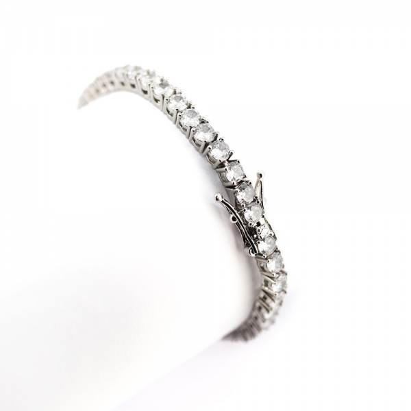 Pulsera de metal plateada con zirconias. Medida: zirconias de 4mm, largo de 7” Material: Fantasía