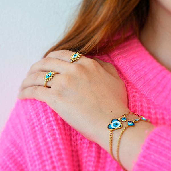 Gold Ring Light Blue ANILLO DORADO OJO CELESTE