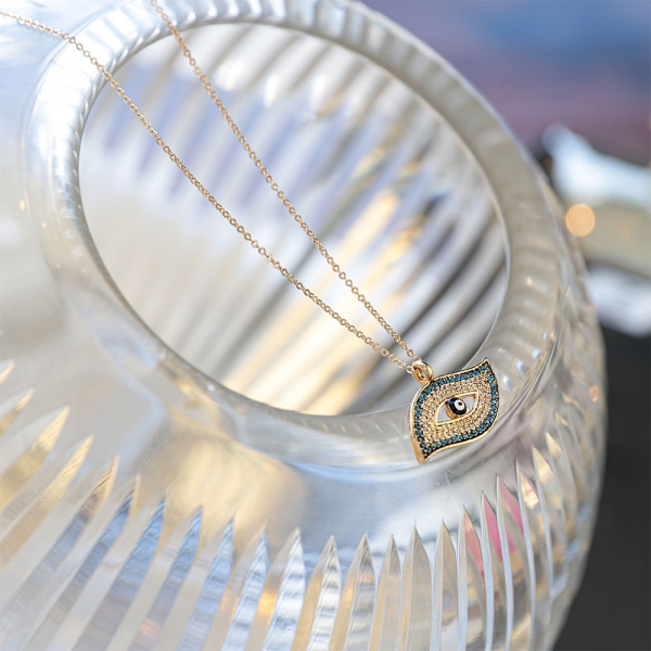 Collar dorado con detalle de ojo turco. Material: Fantasía.